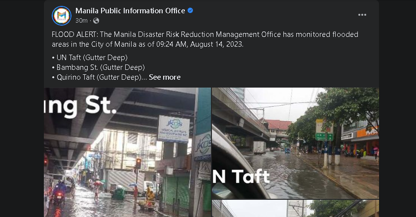 With torrential rains welcoming Manila this morning, August 14, The Manila Disaster Risk Reduction Management Office (MDRRMO) announced on their Facebook page several flooded areas around the area.